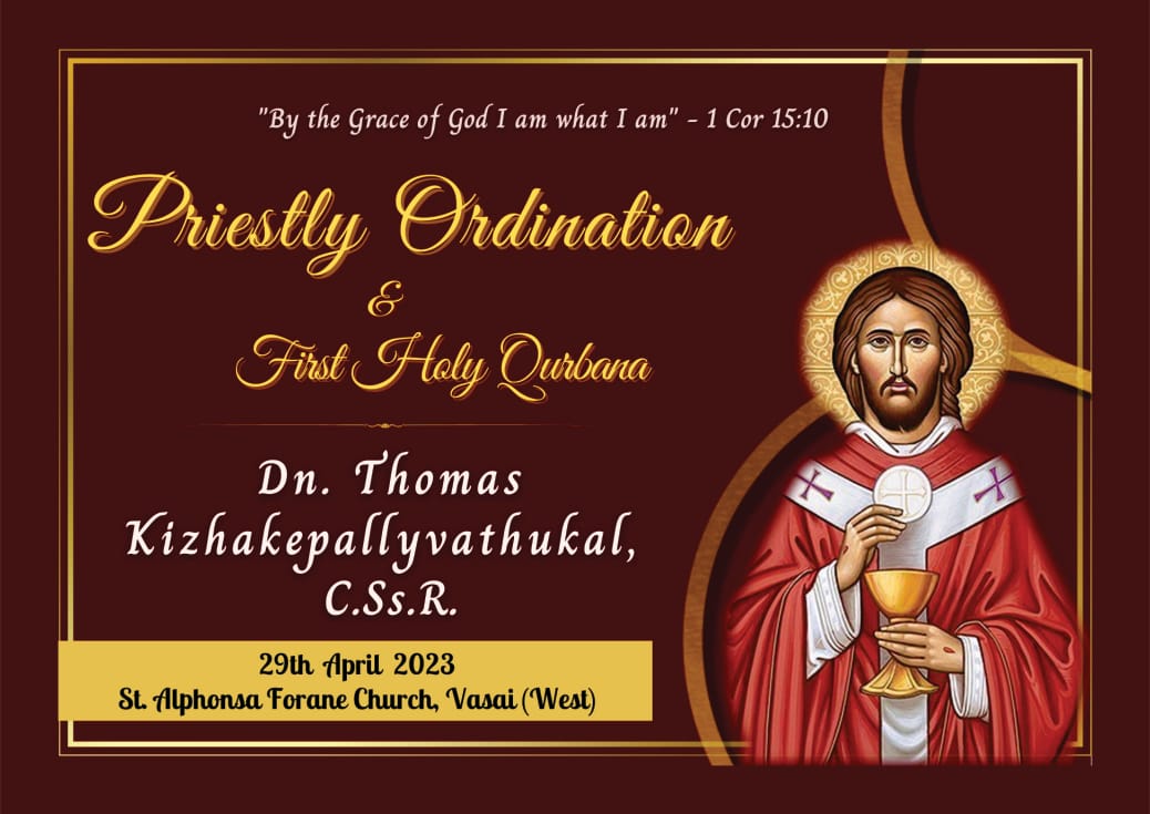 Bishop Barthol Barretto(Nashik Diocese) ordained Jackson Souz on 27th of April 2024 at Our Lady of Lourdes Church, Uttan Pali. Many Redemptorists and other clergy, Religious and laity attended the ceremony.